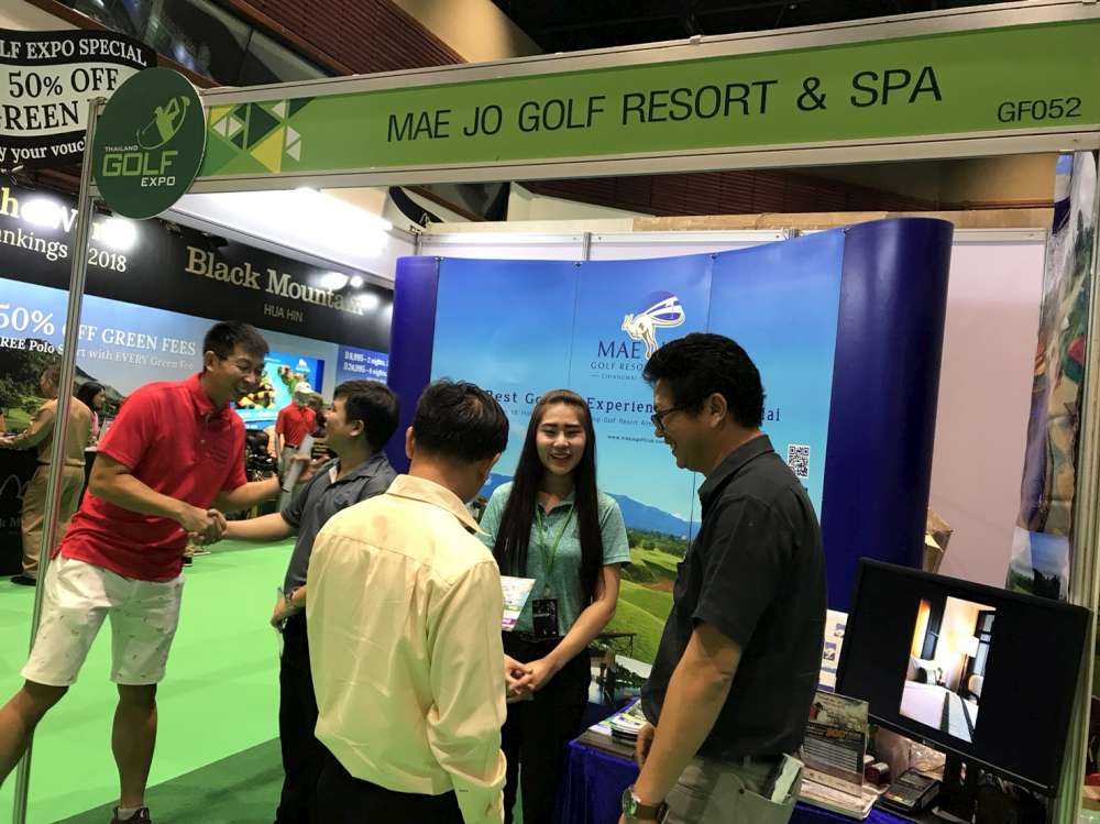 บูธหมายเลข GF052 แม่โจ้กอล์ฟรีสอร์ท แอนด์สปา นำทีมโดย "ตั้ม" เฉลิมพล ชูชาติ ผู้ช่วยกรรมการผู้จัดการฝ่ายขายและการตลาด และ "จอย" เสาวลักษณ์ เครือทอง ฝ่ายการตลาด ส่วนทีมงานฝ่ายการตลาดอีกคนที่ร่วมงานด้วยกันคือ "น้อง" วราพร อากาศวิภาต ไม่ได้อยู่ในภาพ